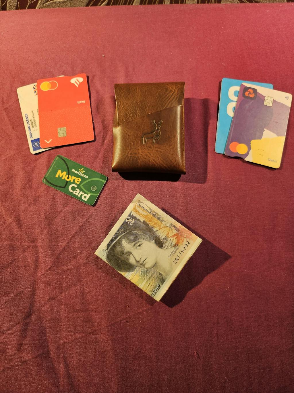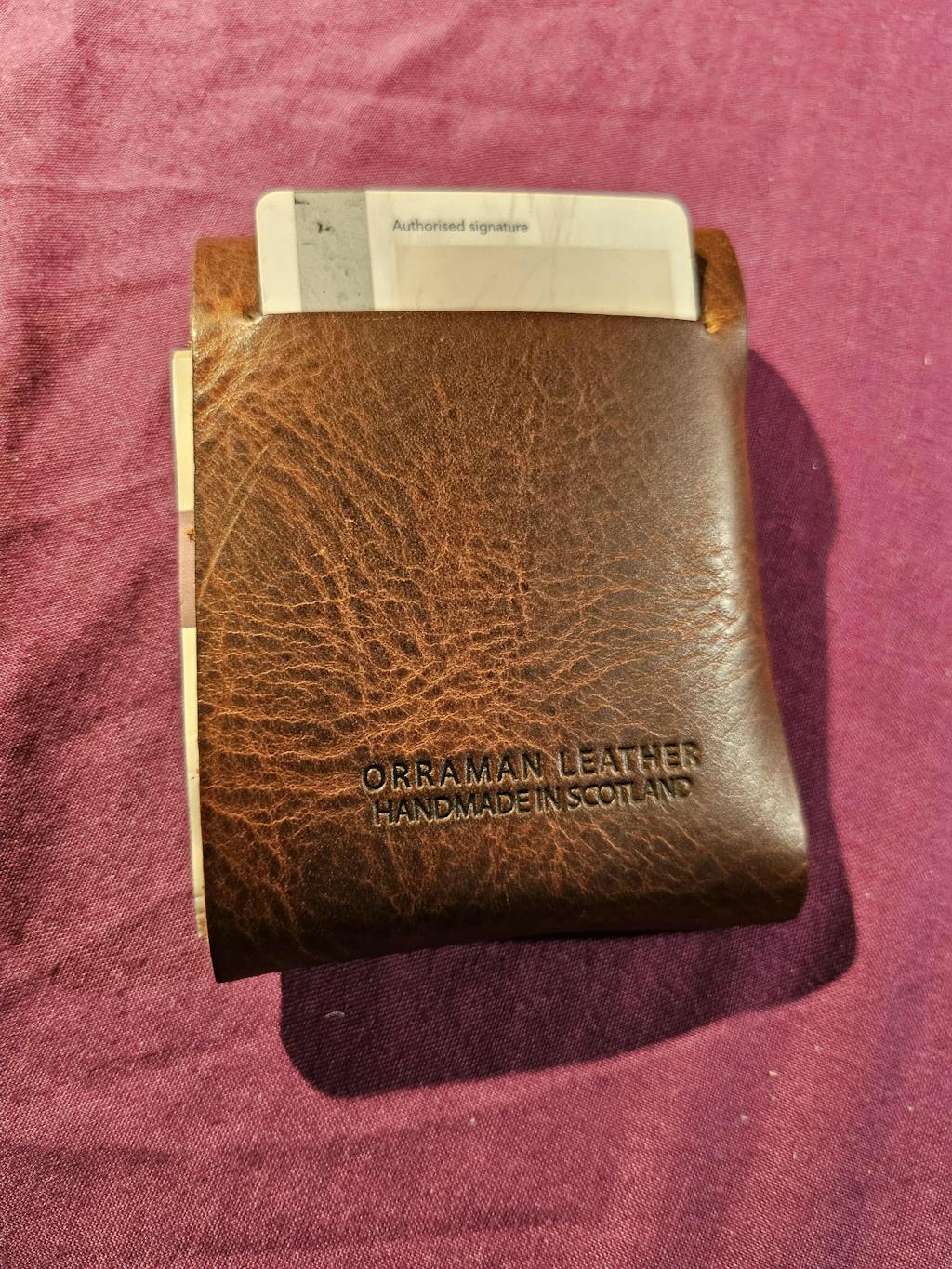 The Cask Wallet – A completely stitchless design, secured by three tabs to form an incredibly strong pouch. Holds up to 12 cards, with two quick-access slots and a cash flap at the back.